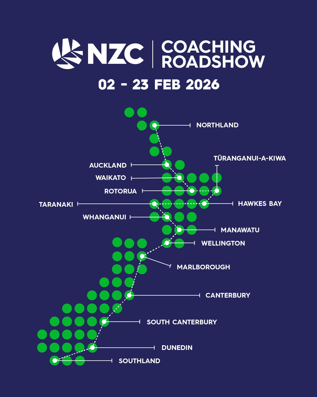 NZC along with Major Associations and District Associations are excited to launch the Coaching Roadshow initiative in February 2026. The aim of the roadshow is to provide face-to-face learning opportunities for community coaches to engage with. Please view your region below for more details about what is being offered in your region.